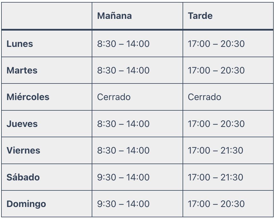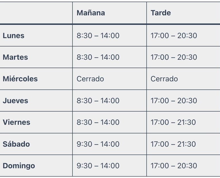 y visítanos en el siguiente horario: