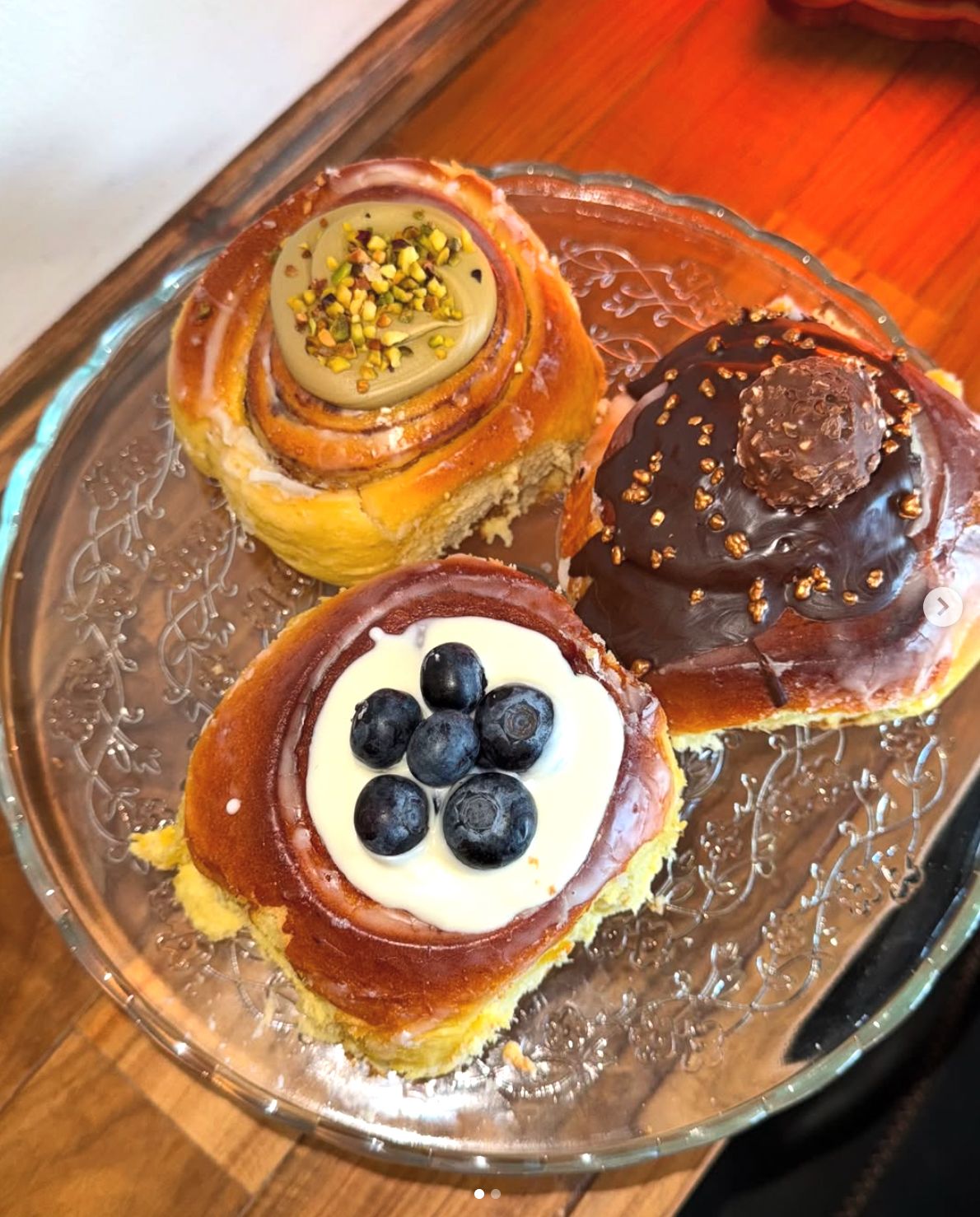Nuestros cinnamon rolls están hechos con harina de maíz (SIN GLUTEN, pero no aptos para celíacos), en sabores que van del clásico al inesperado: pistacho, arándanos, Ferrero Rocher, manzana, dulce de leche y más 🍫🫐